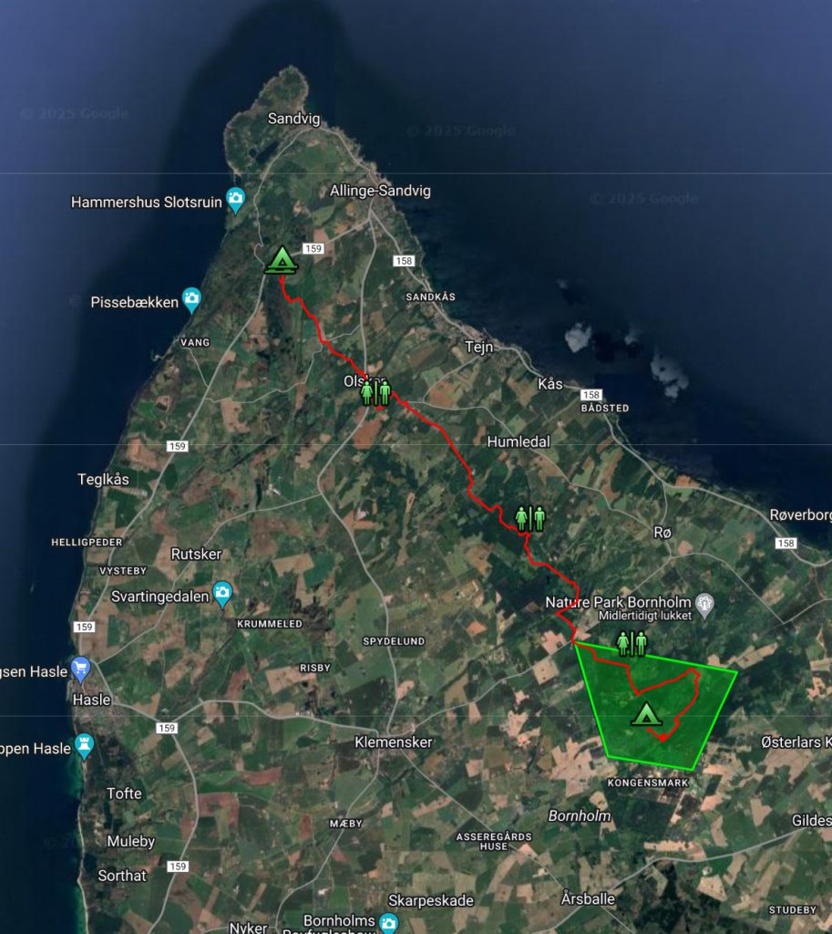 Dagen slutter i skoven på Donnemyr primitive teltplads i en skov med fri teltning.